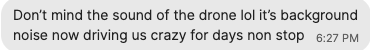 I'd occasionally send a message to a friend asking if they heard the drone today, and they would reply with a casual “yeah I can hear it now.” One friend told me that “it's been a while,” only to realise, when I followed up, that “a while” meant “yesterday.”