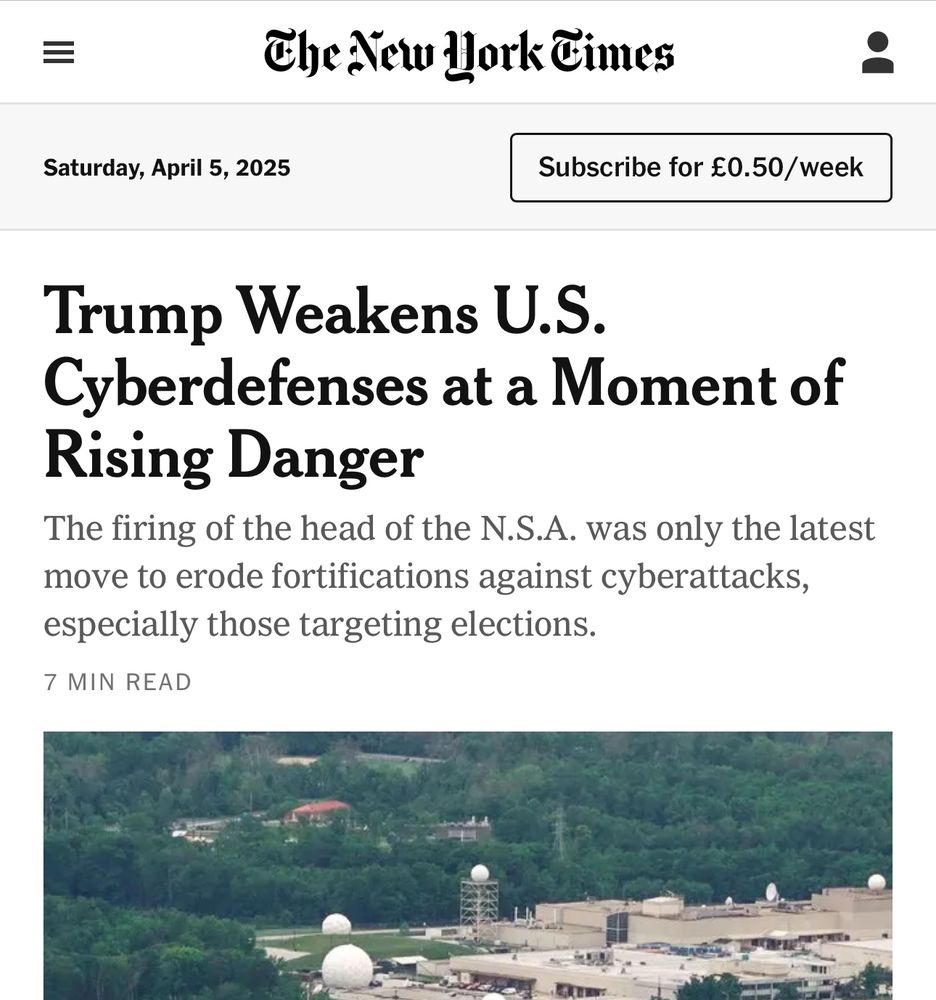 I think you would agree that the claims made in that headline are abstract. Trump's actions are described as weakening cyberdefenses and the moment we live in is one of “rising danger.” The NYT is perfectly comfortable taking a stand here. There are no ‘appears to’ here. It doesn't ‘appear’ like Trump is weakening cyberdefenses. Trump is weakening cyberdefenses. That headline is ‘harsher’ than one describing a massacre of rescue workers and medics.